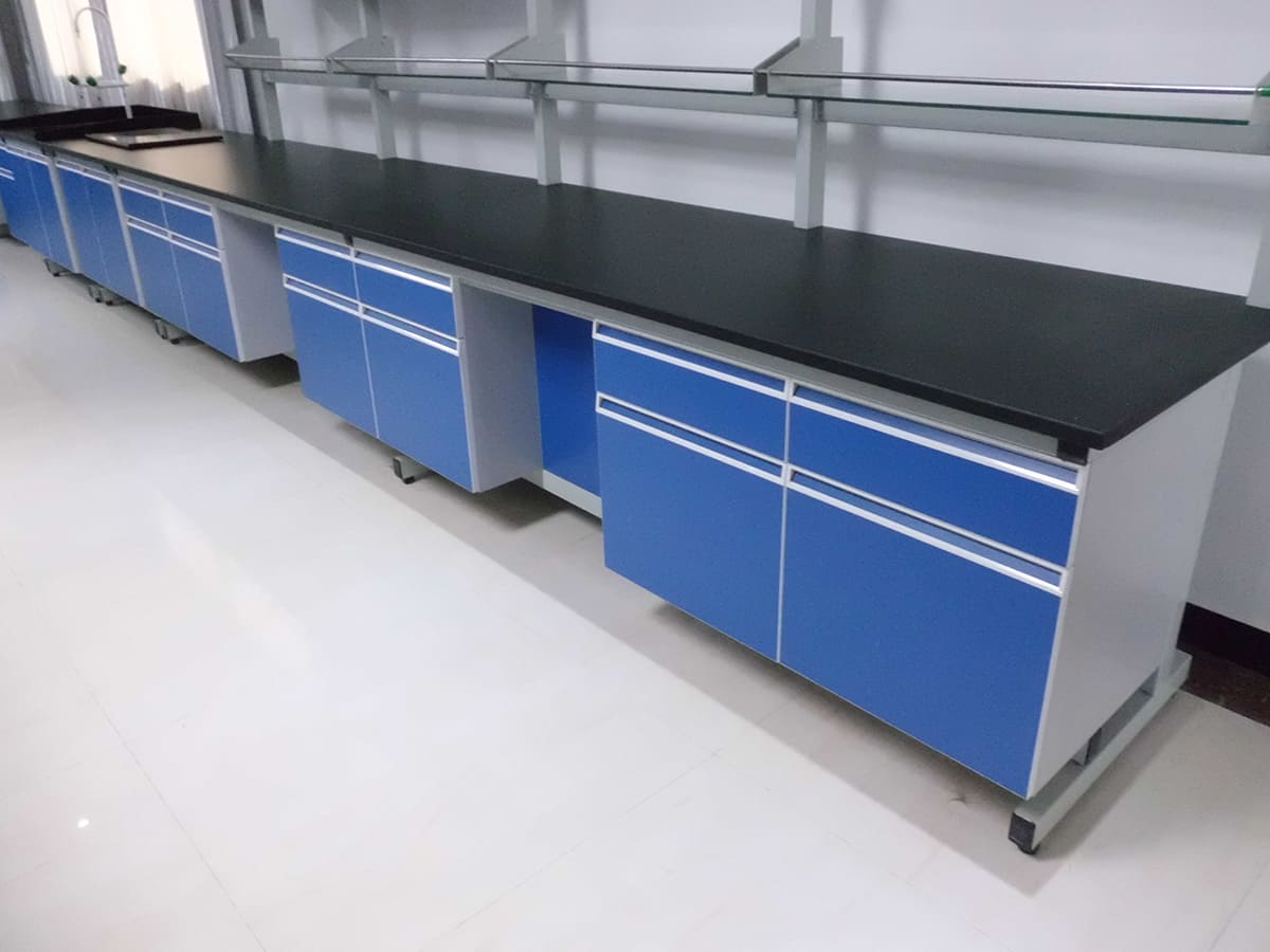 b、實(shí)心理化板采用127mm進(jìn)口實(shí)心理化板,四周邊緣加厚至254mm,邊緣做圓角磨邊處理,符合人體工學(xué)設(shè)計(jì),具有耐酸堿、耐腐蝕、耐沖擊、韌性強(qiáng)等特點(diǎn)。