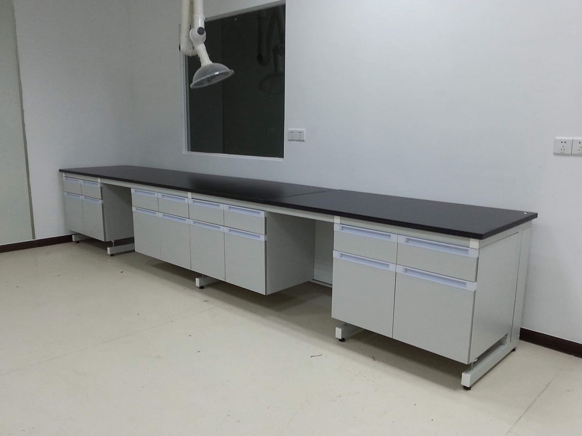 C、千思板采用13mm厚荷蘭進(jìn)口 TRESPA實(shí)驗(yàn)室臺(tái)面板,四周邊緣加厚至26mm,邊緣做圓角磨邊處理,符合人體工學(xué)設(shè)計(jì),具有抗撞擊、耐酸堿、耐腐蝕、耐刻刮、易清潔、抗紫外線、防靜電等特點(diǎn)。